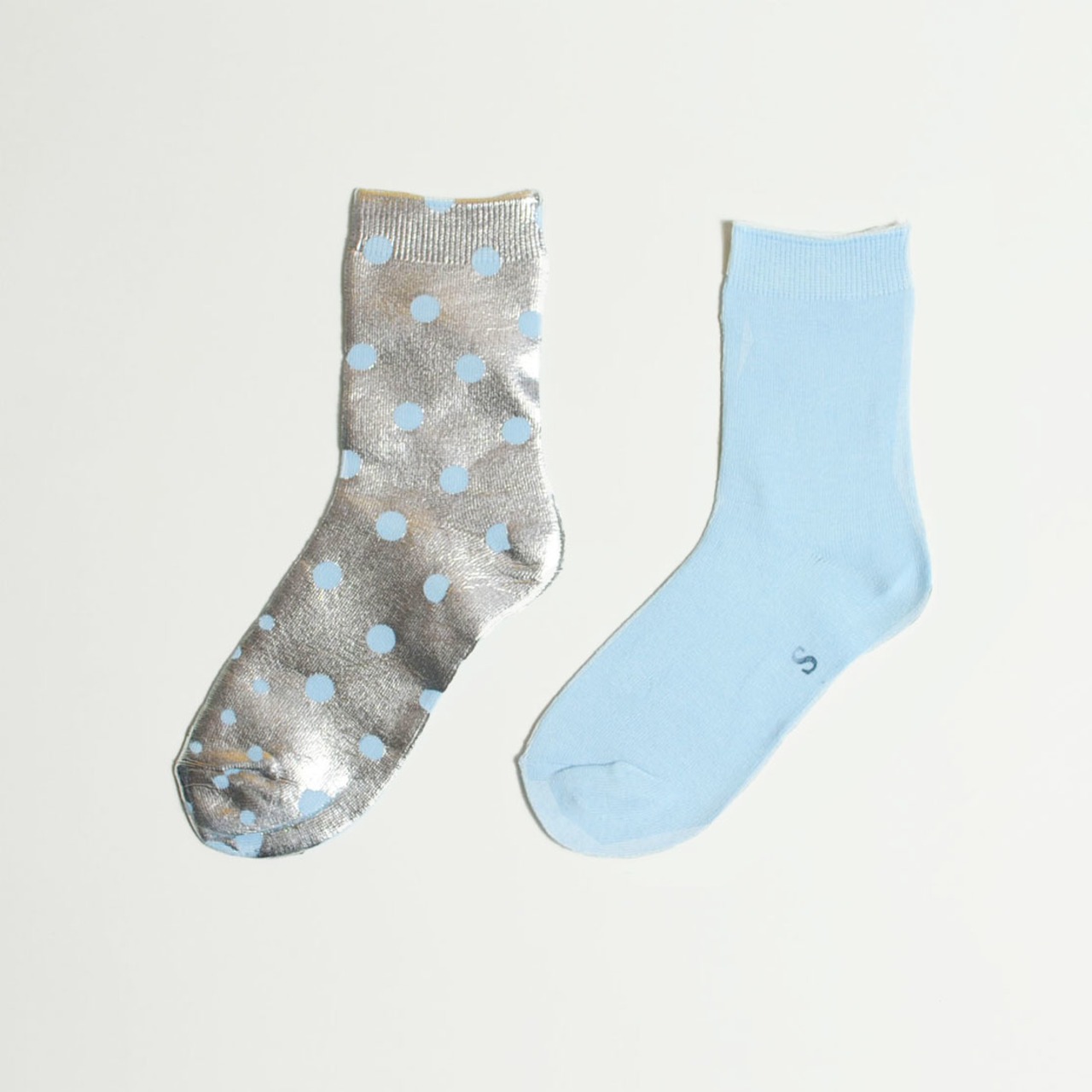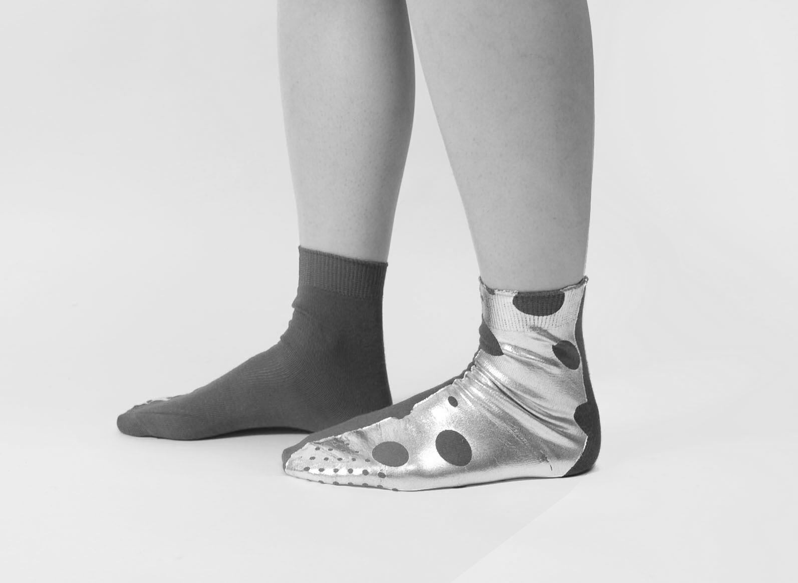 両足片面だけに箔プリントが施されたソックス。