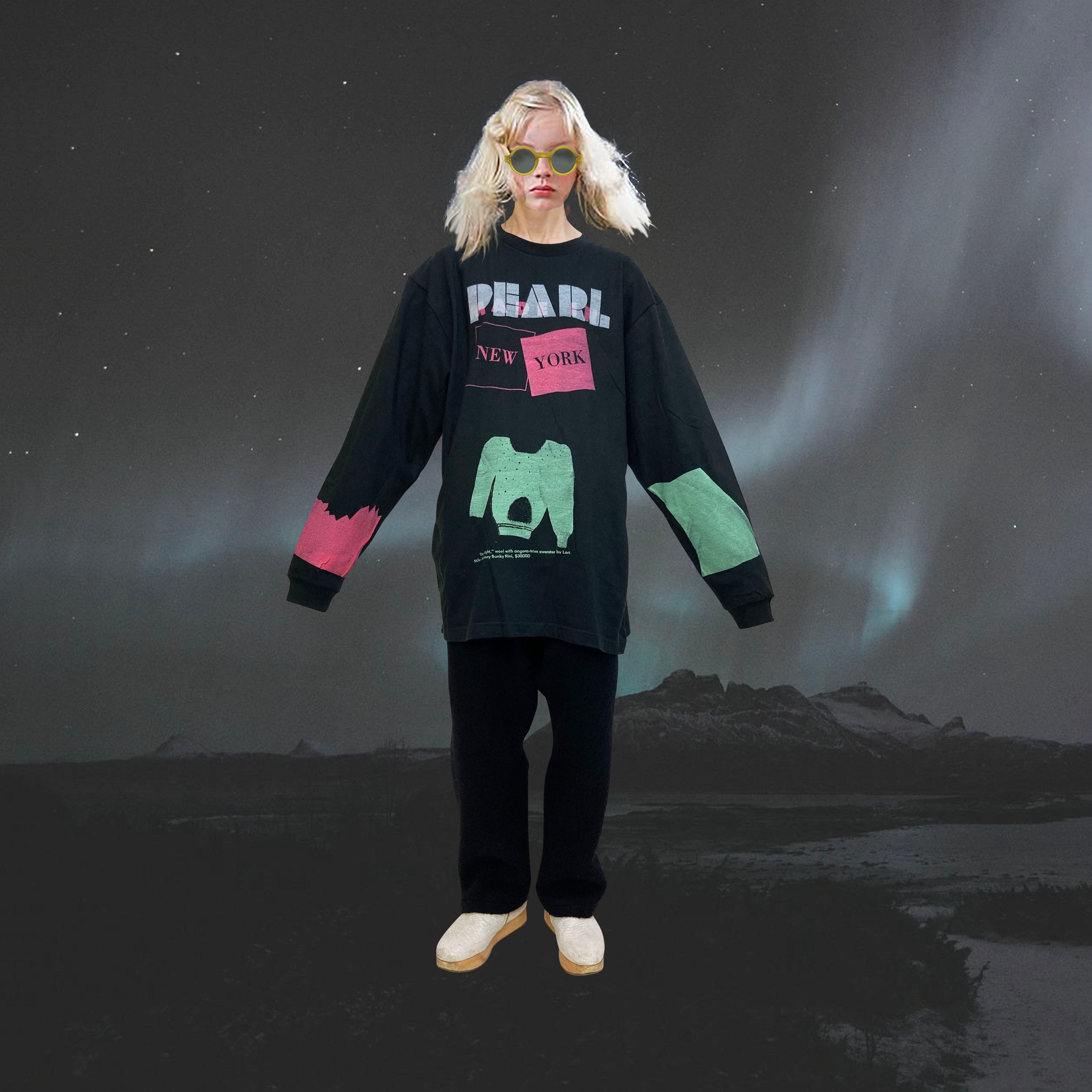 店舗やアパレルメーカーの広告からビジュアルを引用したロングTシャツです。
